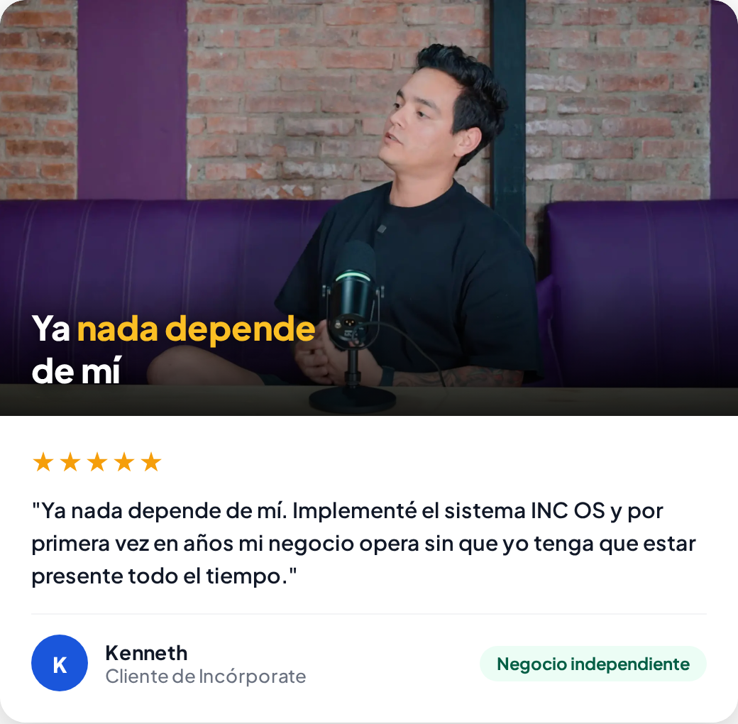 LA SOLUCIÓN: Cómo usted puede ejecutar un sistema empresarial llamado Inc OS para estructurar su negocio y que funcione sin depender de usted, delegar sin perder control, liberando 2 a 3 horas de trabajo diario en menos de 100 días.